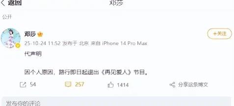 24日中午,@邓莎代丈夫路行发布声明,全文如下: