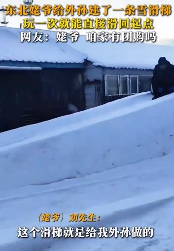 东北姥爷给外孙建了一条雪滑梯,玩一次就能直接滑回起点,网友:姥爷,咱家有团购吗?